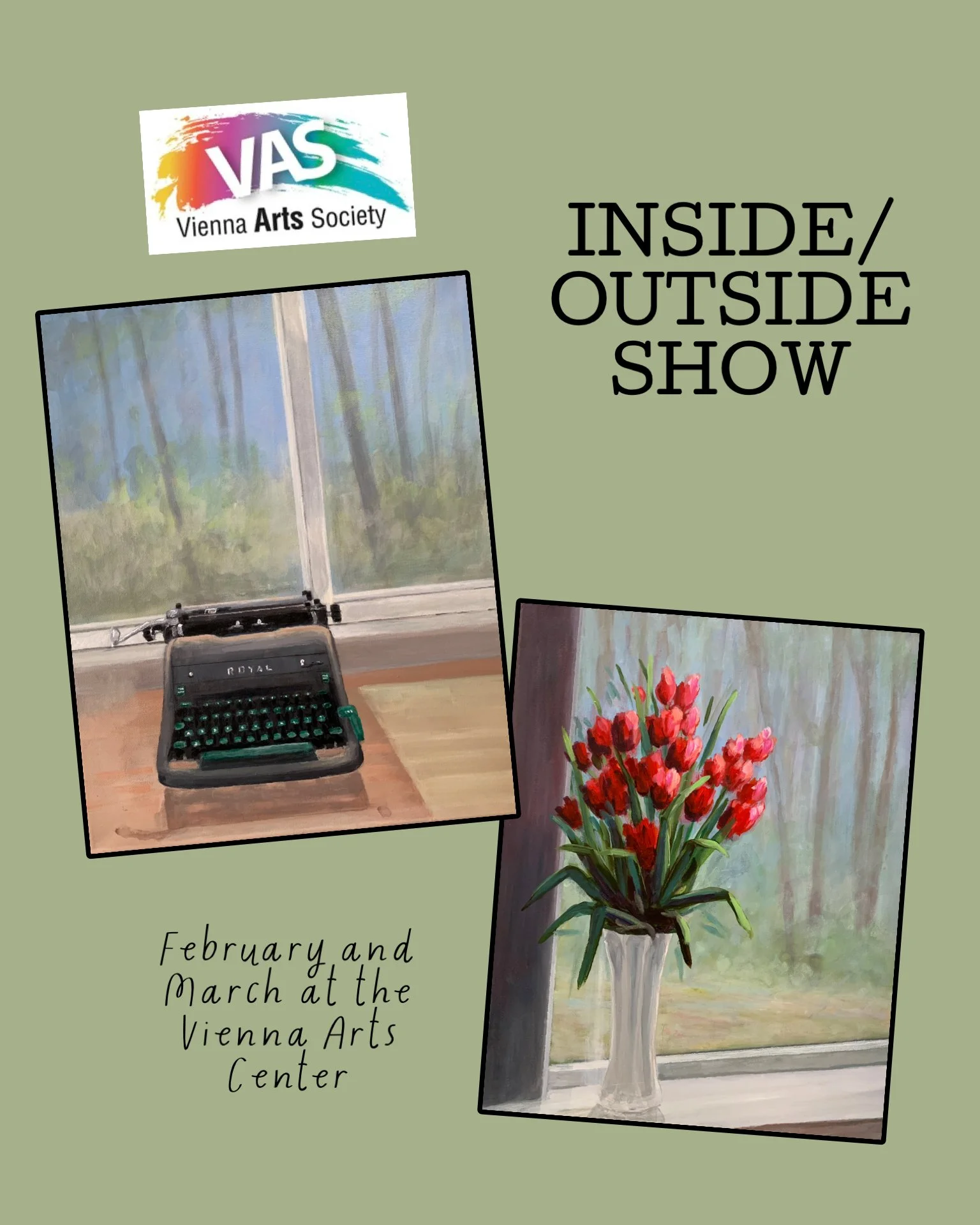 “Unwritten Words” and “Bringing the Outdoors In” are my two paintings on display in the INSIDE/OUTSIDE SHOW at the Vienna Arts Society Gallery!