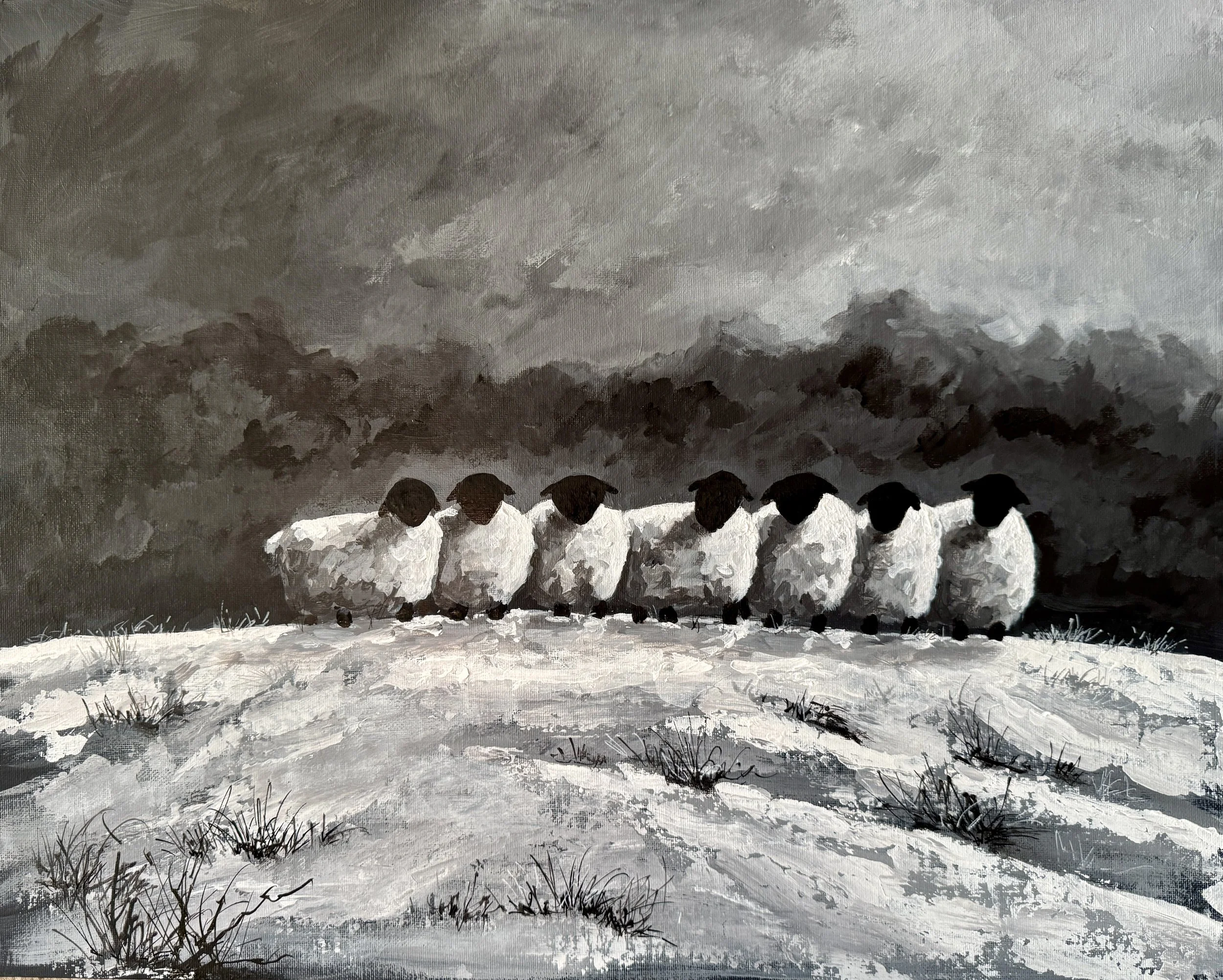 Found out my painting Sheep in the Snow was juried into the November Monochrome Exhibit 2025 at The Art League. One of the very few paintings I actually created to enter into a show … it worked!!