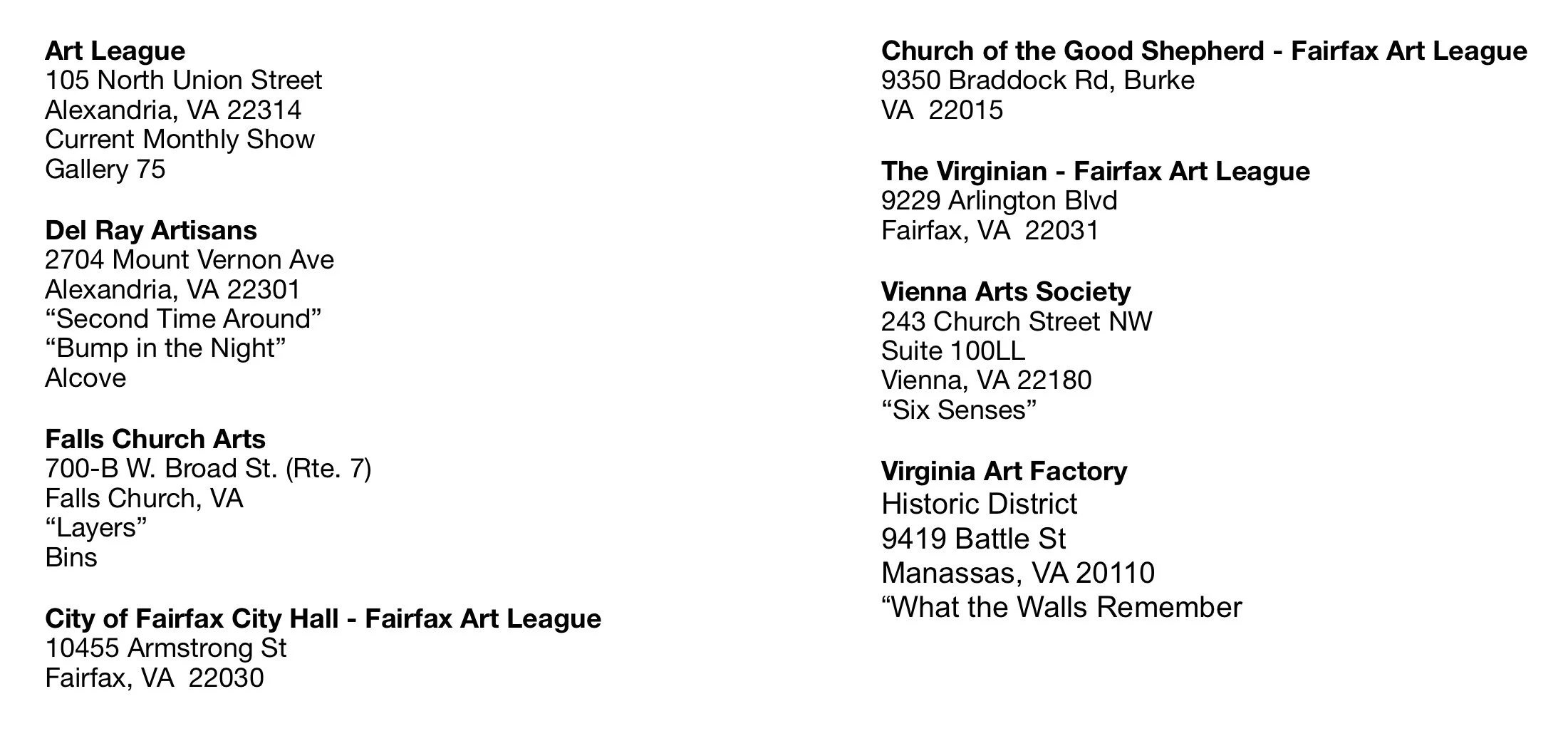 NINE OF THE VENUES IN NORTHERN VIRGINIA WHERE YOU CAN SEE (AND BUY) MY ART IN PERSON