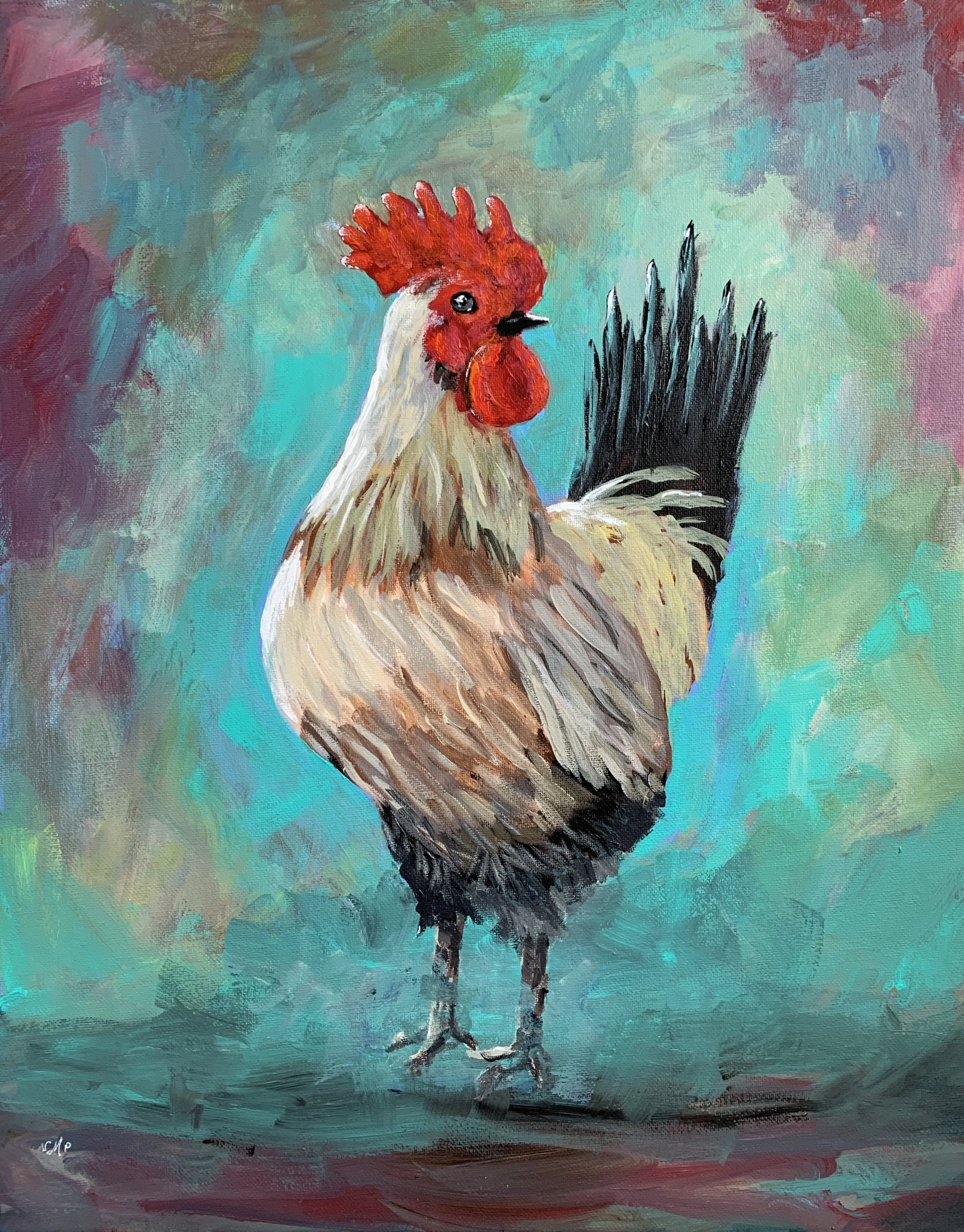 My painting “Rooster” was just accepted in Falls Church Arts - Kensington Gallery “Zest Exhibit”. This is a portrait of a real rooster at Nalls Produce on Beulah Street in Alexandria VA.