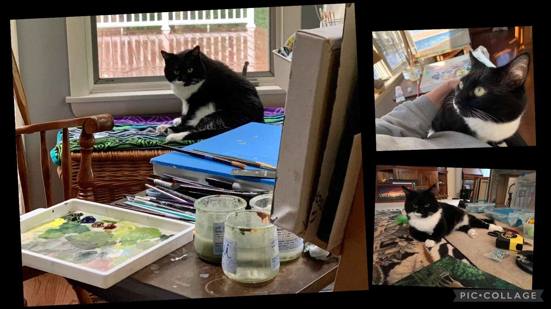 A studio assistant is a vital part of any art endeavor. Frog or dog, bird or fish, otter or horse, even a photo of a loved one, a companion, confidant, or mentor, a studio assistant is a necessary part if any art endeavor. Susan wad adamant that CATS were the superior choice. Susan has edited my subject matter (more images cats would be interested in). She gave encouragement when I suffered from a lack of motivation. And she was extremely tight reigned when it came to following directions when framing or putting together storage units.