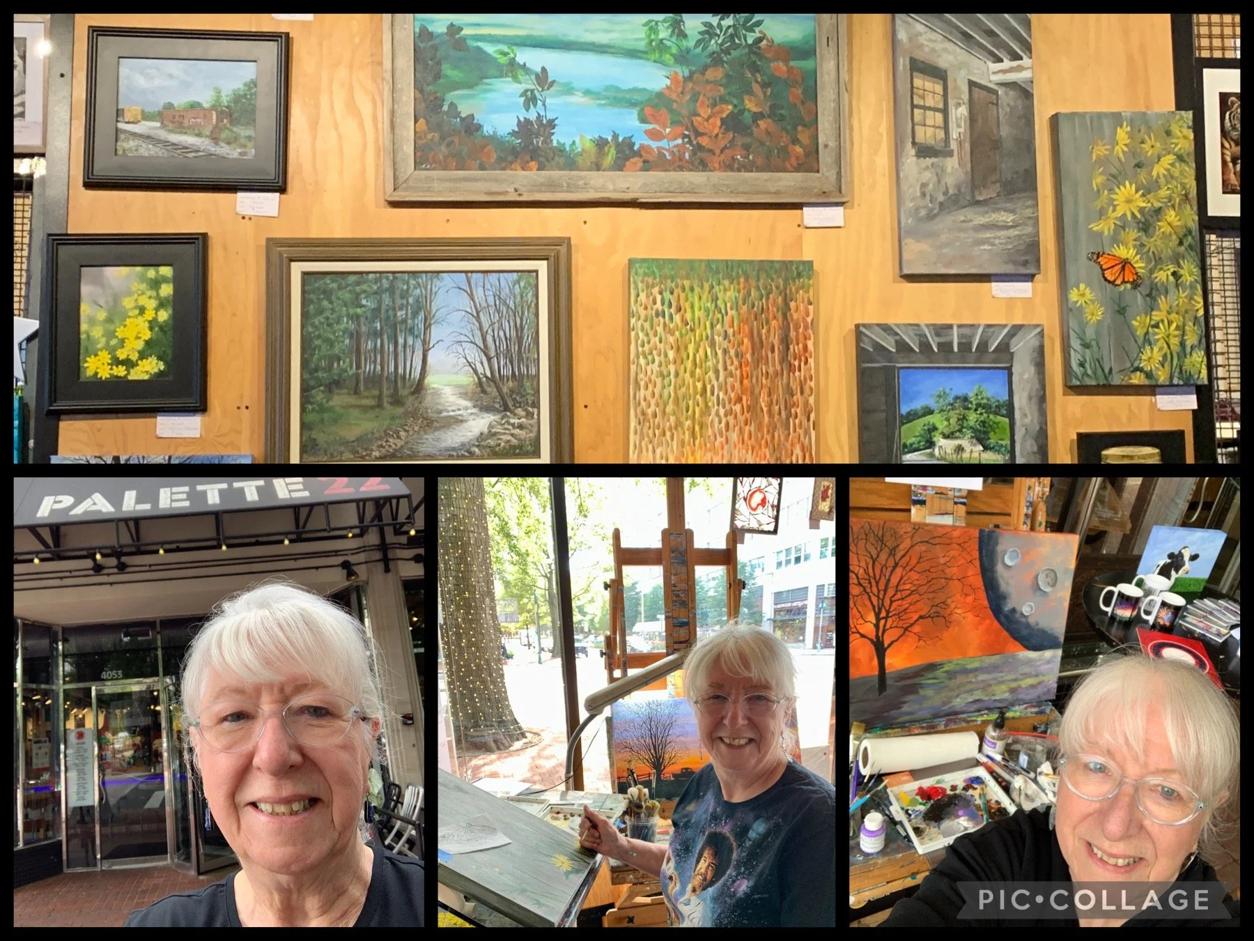 After selling a few paintings, I came across the opportunity to exhibit my work at a local restaurant. I became one of about 30 exhibiting artists. We paint at the restaurant entertaining and engaging the customers. Then the restaurant will hang and sell my art.